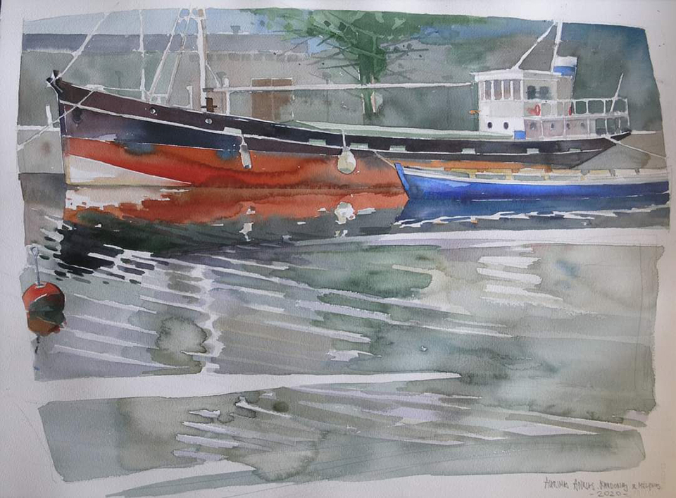 Vieno iš aktyviausių lietuviškos akvarelės puoselėtojų profesoriaus Antano Visockio akvarelėse atsiskleidžia jo Klaipėdos pakrantės ir prieplaukos vaizdinės interpretacijos. Akvarelininko darbuose vaizduojamas pasaulis tarytum spalvingesnis už tikrąjį – žmogaus veiklos objektai čia įgyja ryškias gėlių žiedų spalvas, trykštančias brandžiu optimizmu. Kompozicijos iš tikrųjų net atrodo sudarytos iš mažų spalvingų žiedlapių – tai subtili puantalizmo tapybos technikos įtaka. Šiuose kūriniuose nebeegzistuoja griežta atskirtis tarp materialaus ir dvasinio pasaulio – viskas tampa harmoningu vieniu, kaip ir maži taškeliai ar potėpiai, susijungiantys į vieną, nedalomą visumą. Skaidrios ir abstrakčios Jurgos Sidabrienės akvarelės tarsi atvaizduoja neapčiuopiamus dalykus: sroves, atspindžius, garus, dangų – miglotą, giedrą ar apsiniaukusį. Pasak pačios dailininkės, šiųmetinio plenero istoriniai ir kultūriniai kontekstai pakylėjo kūrybinį procesą į naują lygį, kuris leido akvarelėse pavaizduoti mistiškus, vandeniu užlietus praeities sluoksnius.
