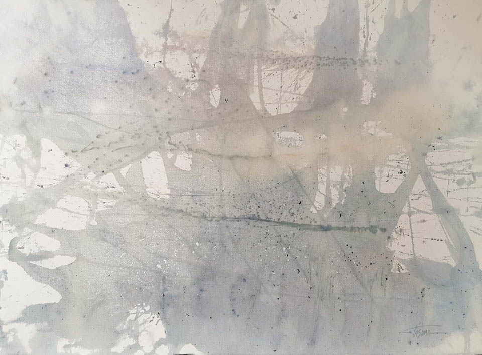 *Tatjana Simanaitienė "Indigo Navis", 53x73 cm, mėlynių dažiklis, popierius.